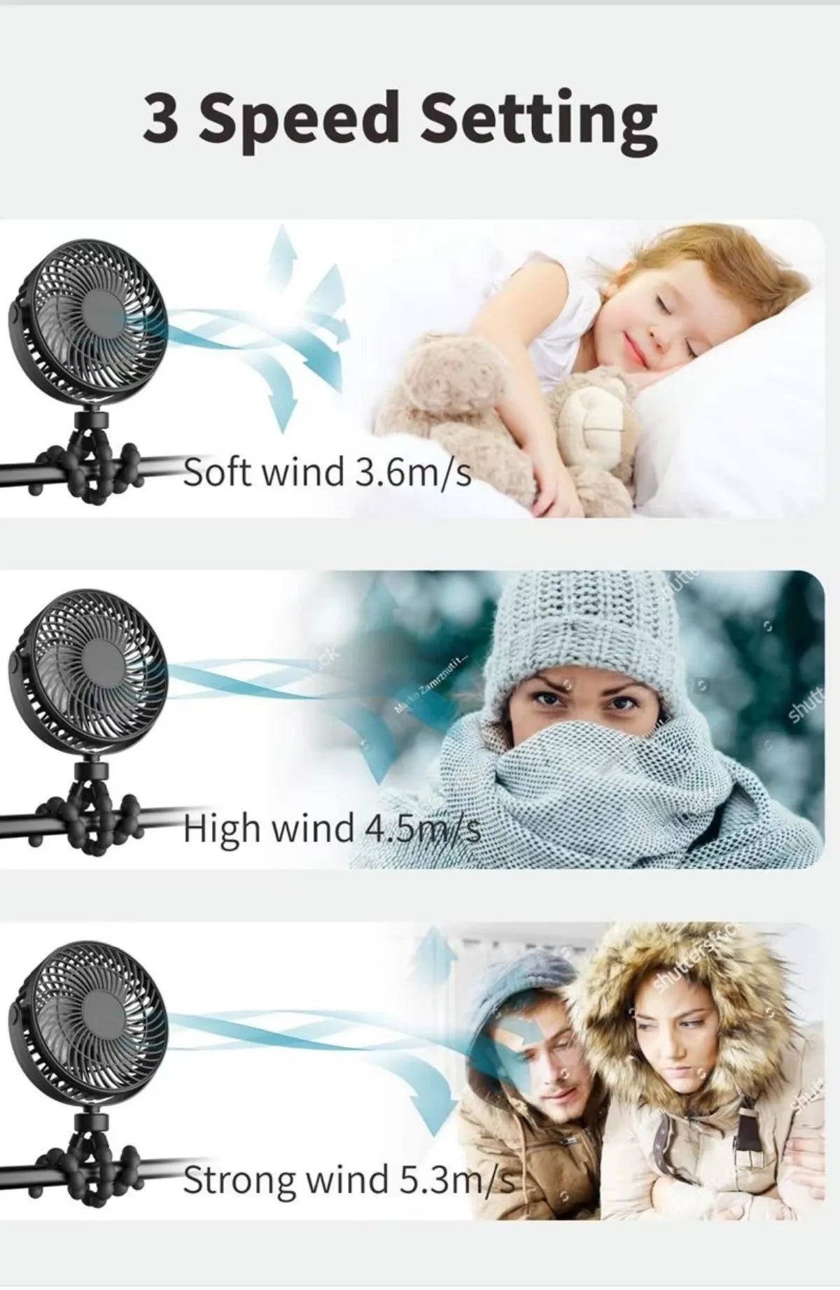 Keep your baby cool and comfortable on every stroll with our 3-Speed Portable Stroller Fan with Light — a must-have accessory for sunny days and outdoor adventures. This USB rechargeable mini fan features three adjustable wind speeds and a built-in night light, providing gentle airflow and soothing illumination for your little one.
