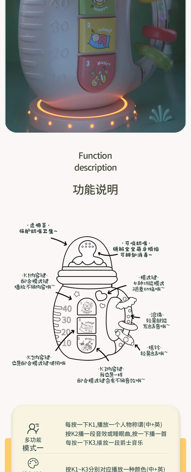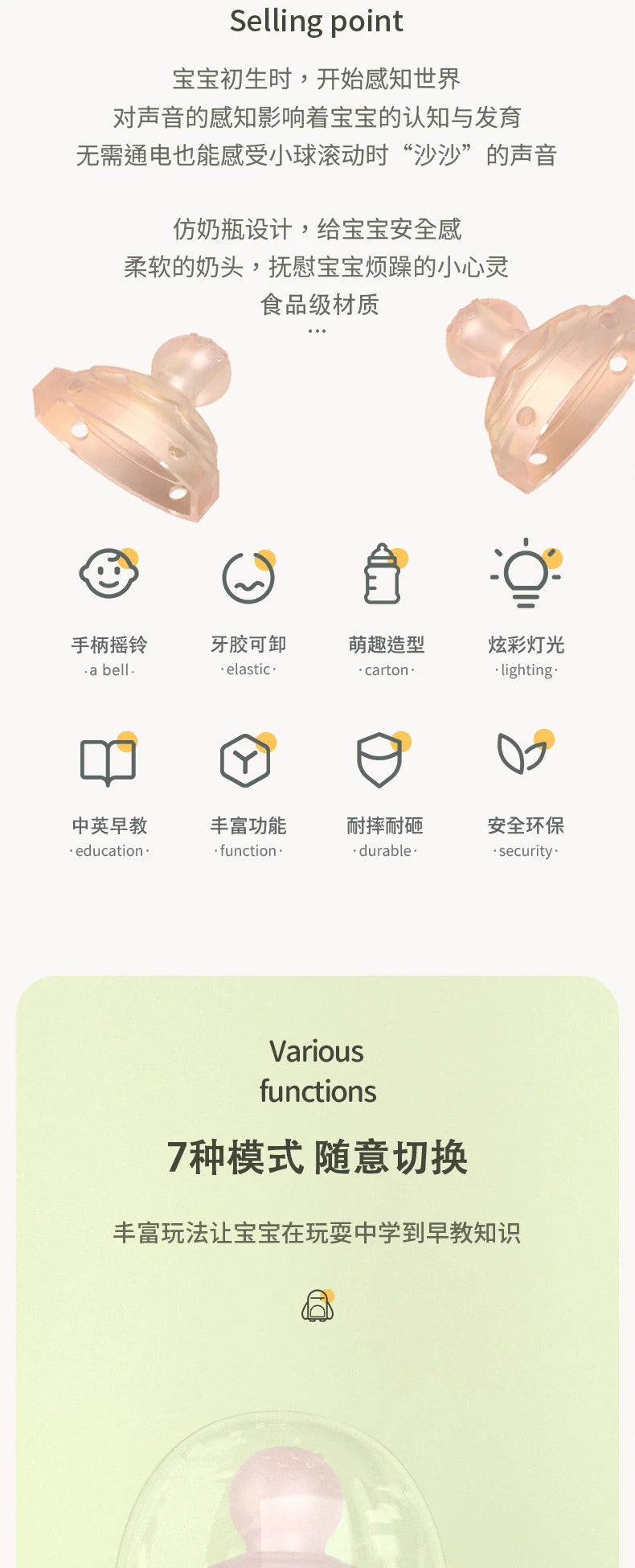 Baby Musical Feeding Bottle Pacifier Newborn Soft Teether Rattles Educational Toy Mobile Rattles Toys 0-12M Soothing Vocal Music