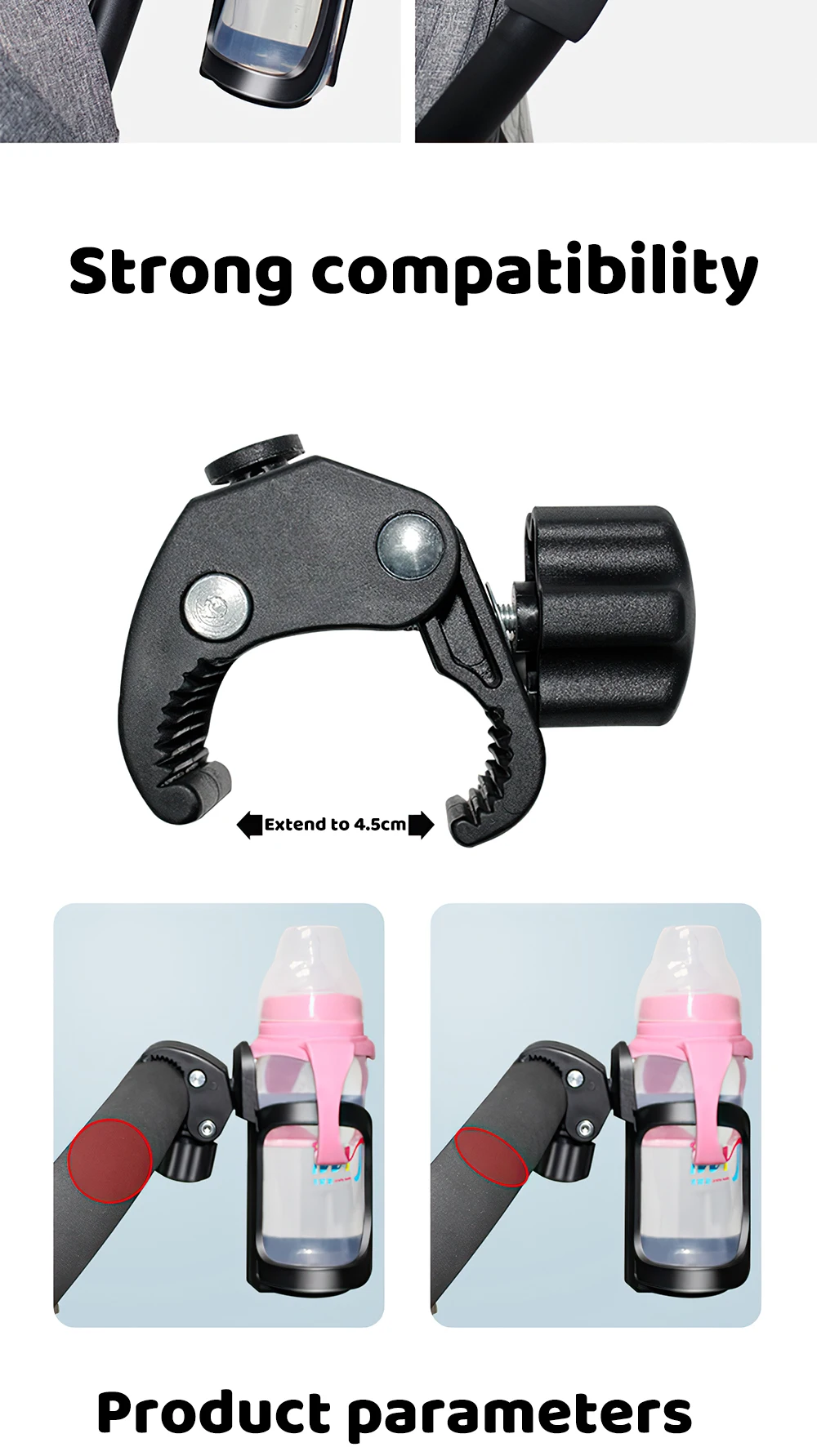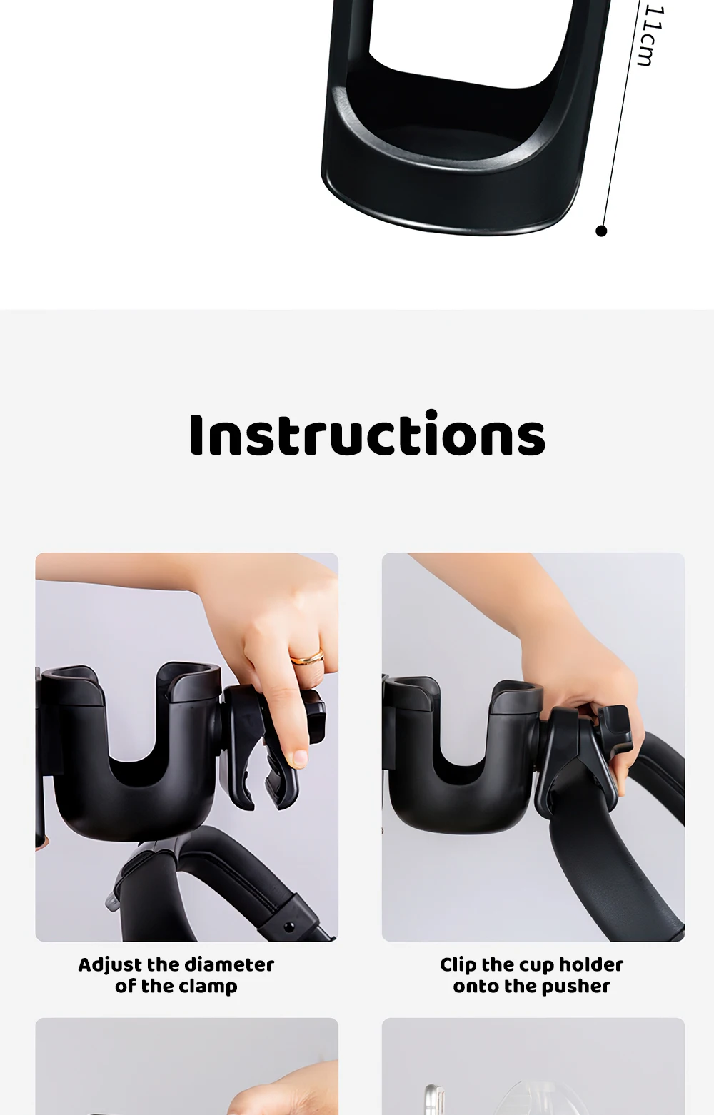 Made from durable, lightweight plastic, it fits a variety of cup sizes while keeping your phone safely in place for navigation, music, or quick check-ins. Perfect for coffee runs, long walks, or everyday outings with your little one.