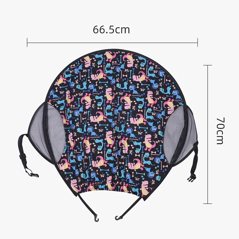 The stretchy Lycra straps, buckle system, and side mesh vents make it easy to attach to most strollers, ensuring a snug and secure fit. Foldable and portable, it’s perfect for travel, walks, and any sunny adventure.