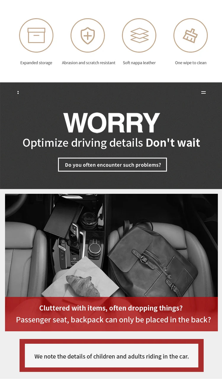 【Safety Driving】It helps reduce and prevents distraction while driving by providing easy access to your belongings without taking your eyes off the road. Eliminating the need for inconvenient purse placement at your passenger's feet