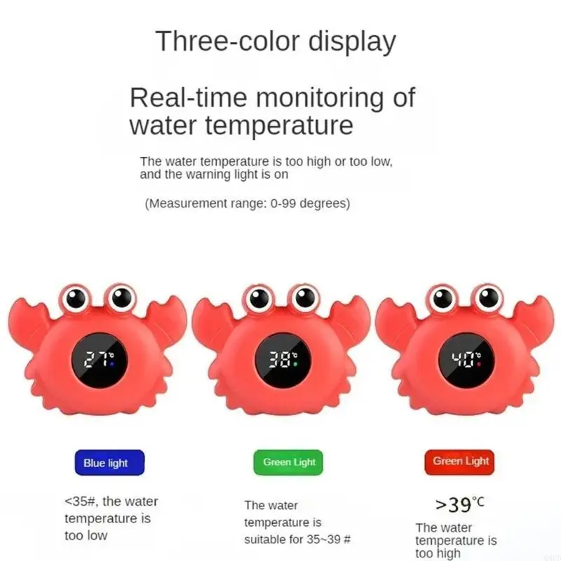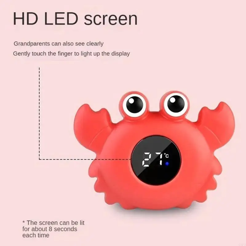 Designed with cartoon this temperature meter adds fun to bath time. The precise electronic measurement quickly displays the water temperature on the digital screen.