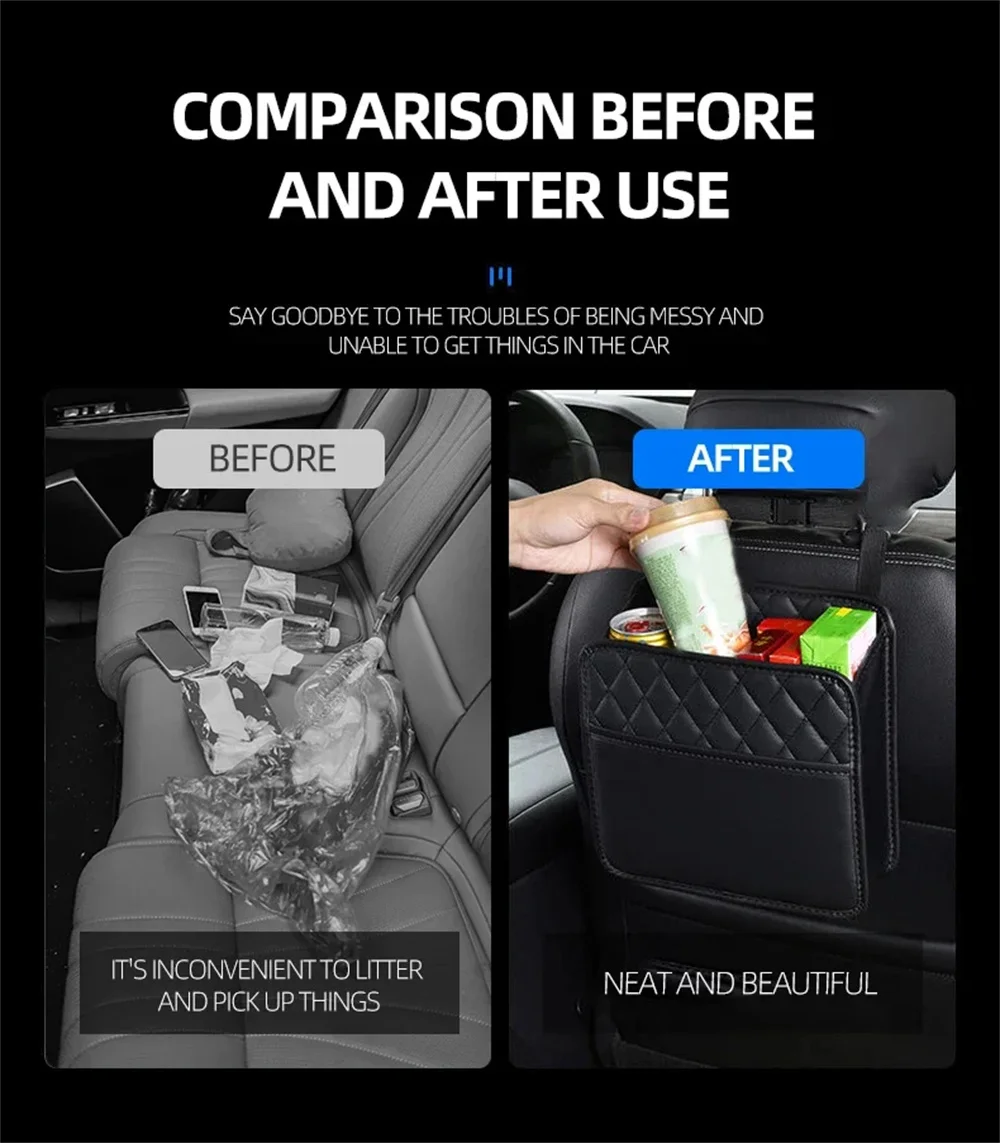 Keep your car clean, organized, and stylish with our Multifunctional Leather Car Seat Organizer — the perfect blend of luxury and practicality. Made from high-quality, durable leather, this sleek storage bag easily attaches to your seat, offering a convenient place to store snacks, tissues, bottles, phones, and small trash while on the go.